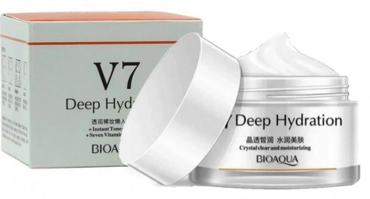 V7 Deep Hydration Bioaqua Cream is a luxurious moisturizer designed to deeply nourish and hydrate the skin.